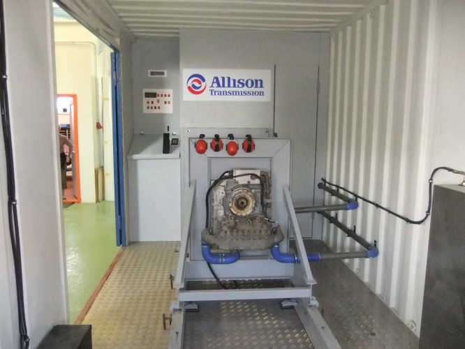 Az Allison automata váltók szerviz tevékenysége során speciális járművek és gépek automata / félautomata nyomaték (sebesség) váltóit javítjuk. Az ebből szerzett tapasztalatainkat felhasználva, az Európai Unió, illetve az Európai Regionális Fejlesztési Alap támogatásával kifejlesztettünk egy különféle típusú automata / félautomata nyomaték (sebesség) váltók beépítés nélküli tesztelésére alkalmas mobil tesztpadot, amely a piacon egyedülálló módon, a szabványos konténerbe épített kivitelezésnek köszönhetően, rendkívül egyszerűen szállítható. A mobil kivitel lehetővé teszi helyhez kötött vasúti járművek, dízel motorkocsik, vasúti pályaépítő gépek, olajipari, bányaipari berendezések, illetve földmunkagépek automata / félautomata nyomaték váltóinak helyben történő tesztelését, javítását is. Műszaki jellemzők: - Szabványos közúti, légi, illetve tengeri szállításra alkalmas konténerbe épített kivitel az egyszerű szállíthatóság érdekében (méretek: 6m x 2,4m x 2,335 m / 3000 kg) - 1 órán belül szállítható állapotba hozható, illetve beüzemelhető - Külső energia ellátástól független, szélsőséges időjárási körülmények között üzemeltethető - CAN kommunikációra alkalmas diesel motor, mint meghajtó és energiatermelő egység - A tesztpad alkalmas a korábban gyártott hidraulikus vezérlésű és a jelenlegi elektronikus vezérlésű váltók tesztelésére - A lehető legkevesebb előkészítést igénylő, gyorscsatlakozó felülettel ellátott kivitel - A teljes tesztelés egy fő részére maximum 4 órát vesz igénybe - Szabványos alkatrészekből (kardán, kardánperem, csapágyazás, bordástengelyek, illesztő koszorúk, stb.) felépített kivitel, a minél egyszerűbb és gyorsabb pótalkatrész ellátás érdekében - Az eredeti vezérlő elektronikákkal alkalmas a tesztelésre - A CAN rendszer felhasználásával a lehető legtöbb mérési információ begyűjtése elektronikus mérőszenzorok és egy központi adatgyűjtő szoftver alkalmazásával - További fejlesztési lehetőség a központi járművezérlő hardverek és szoftverek teszteléséhez, valamint előre definiált szabványos útprofilok alapján történő automatikus tesztelés, adatgyűjtés és hiba kiértékelés végrehajtására - Az adatgyűjtő rendszer szabványos SAE J-1939-es adatbuszra épül, így a meghajtó motorok széles palettája alkalmazható